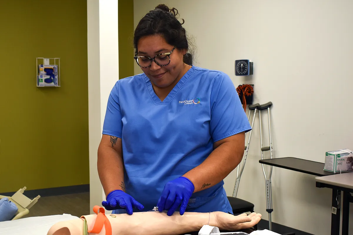 A: Yes. The Practical Nursing program at Medquest College includes 192 hours of on-campus lab practice and 432 hours of clinical rotations at assigned sites. This hands-on experience is crucial for nursing procedures like starting IV and giving injections.